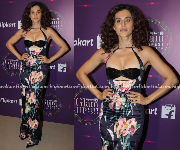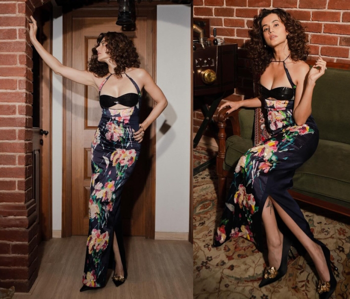 At an event for an online retailer that she reps, Taapsee was seen in a floral gown from Taali featuring a shiny metallic bralette. I saw her photoshoot pics first and went, she looks pretty glam. Then I saw videos from the event and the whole upper design just looked really odd to me.