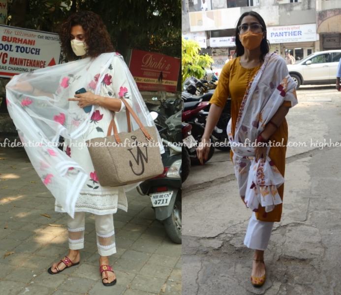 Taapsee and Sara were spotted out and about wearing floral desi suits. Care for either or neither?