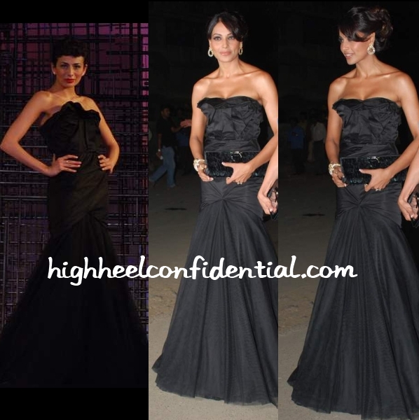 Perhaps to wipe from everyone’s mind, this orange look, Ms. Balan chose to don another orange one and can’t say we have too many complains. Love the no-bling/just-rudraksha beads look. And while we heart the sari, do think Ms. Balan would have been perfect if she had worn the sari just one inch higher.