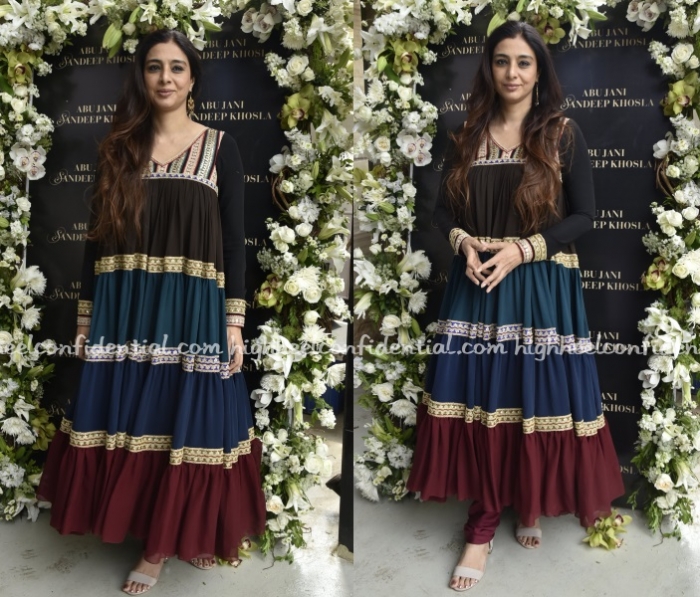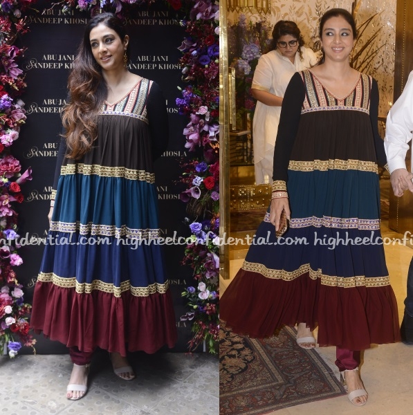 Sonali attended Abu Jani Sandeep Khosla’s store launch on Wednesday evening wearing a black kurta suit featuring a ruffle dupatta by the duo paired with a statement necklace, snakeskin bag and black pumps. She looked elegant in it.