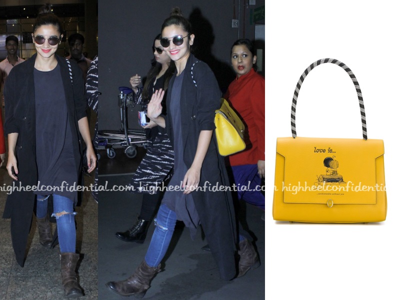 While at the movies, Alia was photographed in a Zara dress. Layering it with a matching jacket from Urban Outfitters, she finished out the look with a pair of white sneakers. Comfortable as it might have been, neither the color nor the silhouette did much for the actor. Meh!