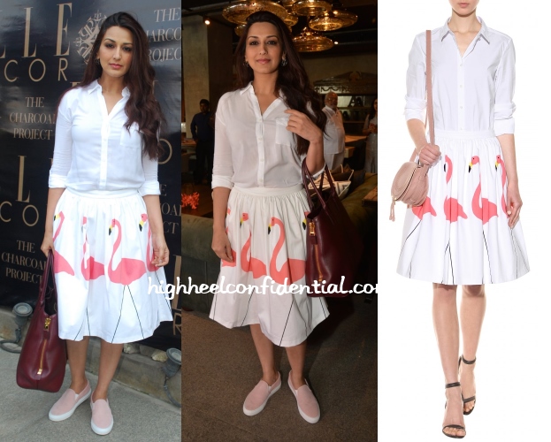 Wearing an Alice + Olivia lace insert top with silver leggings, Riddhima attended a recent launch. A pair of matching sandals and Saint Laurent bag finished out her look. While the pants might have worked at another time, with something else, with the flirty top it didn’t. Love the top and the bag though!