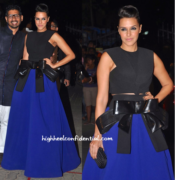Manasi opted for a one-shouldered Alpana & Neeraj gown finishing off the look with a black clutch, diamond chandelier earrings and ring. This would’ve been a good look if not for the hair. The messy high-bun felt like one of those fake buns that she clipped on after the fact.