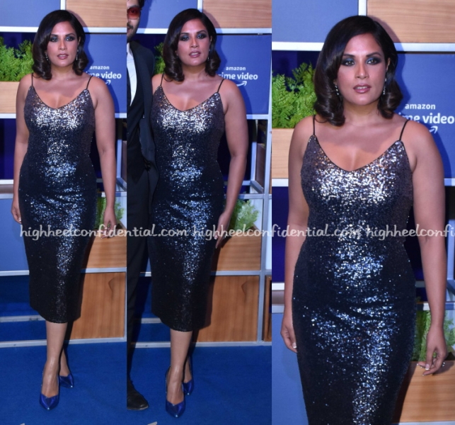 Richa attended the Amazon event on Thursday evening wearing a sequin ombre sheath dress from Laundry By Shelli Segal with silver pumps and a retro hair do. She looked good!