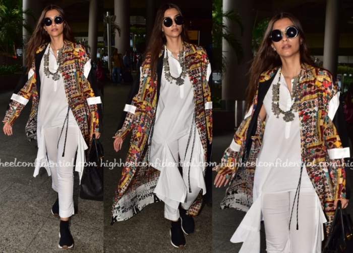 Sonam attended two events recently, first wearing an Anamika Khanna jacket and culottes combo and then in a green Emilia Wickstead dress.