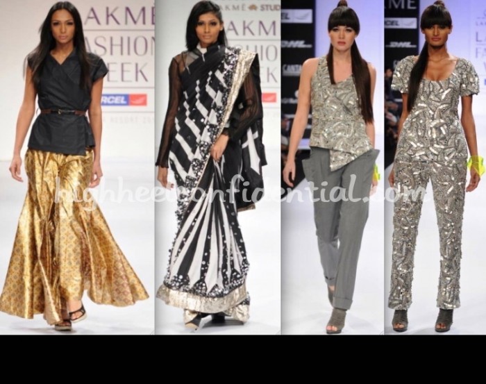 Unfortunately, the sari that looked wonderful on the runway didn’t quite look the same off it and the ill-fitted sleeves are primarily to blame. They ended up making the overall look rather sloppy. Hiding the vest under the sari also didn’t help.