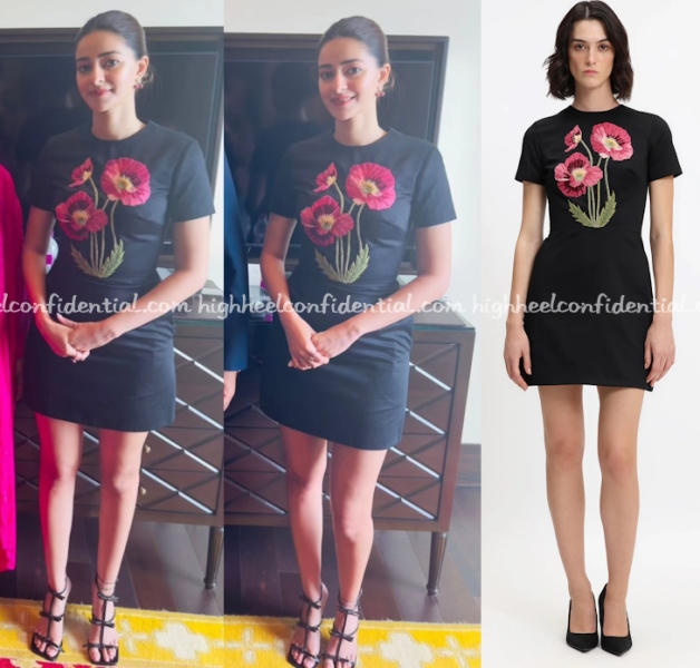 Ananya attended the trailer launch of her movie in Mumbai wearing an embroidered sari from Kshitij Jalori paired with orange toned studs. A week ago she attended the Delhi trailer launch event wearing a floral print sari from Torani with a choker and her hair up in a bun complete with mogra.