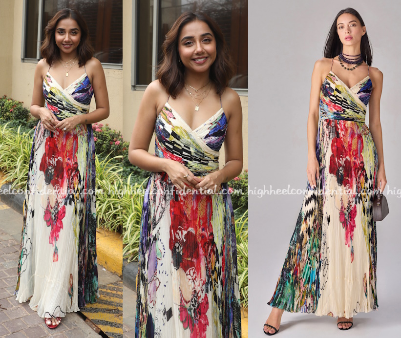 Prajakta was seen promoting her upcoming series wearing a printed maxi from Saaksha & Kinni paired with layered necklaces and red sandals. She looked good in it!