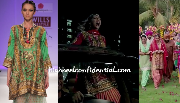 For the latest round of movie promotions, it was a floral Anupamaa sari for Sonam. Wearing her hair down, she finished out the look with a Vinita Michael cocktail ring. Though the hair feels much too heavy for the look, there’s no denying Ms. Kapoor wears the sari well. And despite that minor gripe, she looked nice.