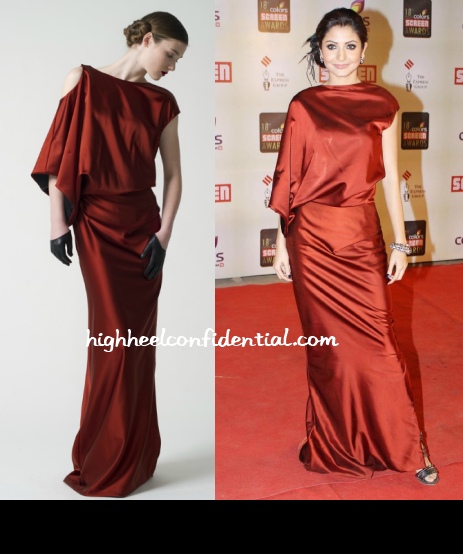 For the Screen Awards, Anushka picked a gorgeous maroon Bibhu Mohapatra gown paired with jewellery by Anmol.