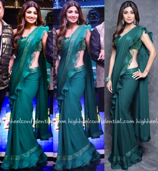 Wearing an Avvantikaa S Parwani sari, Shilpa filmed an episode of her television show recently. The sari isn’t exactly novel, but as far as looks go, it was right up Ms. Shetty’s alley.