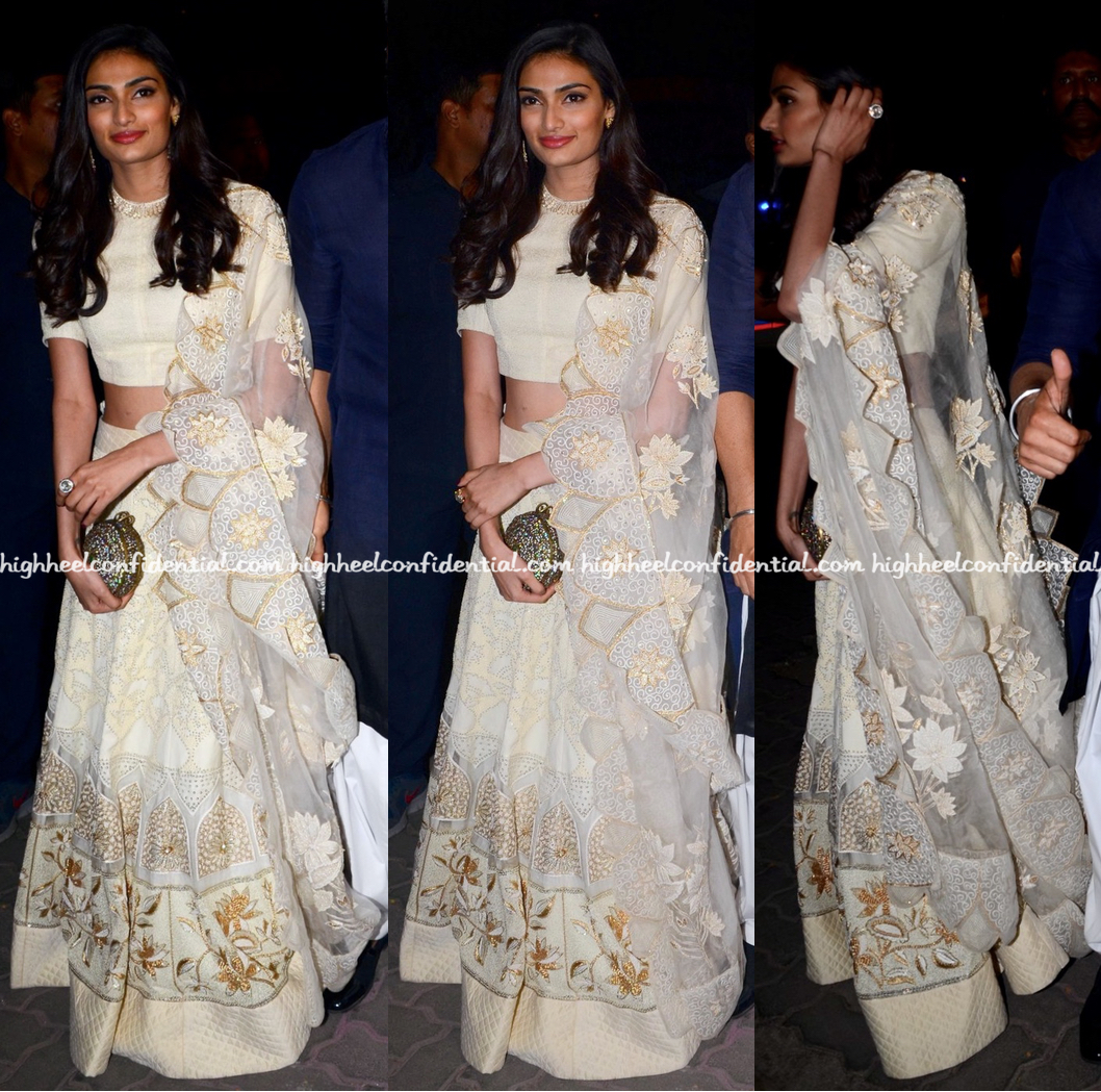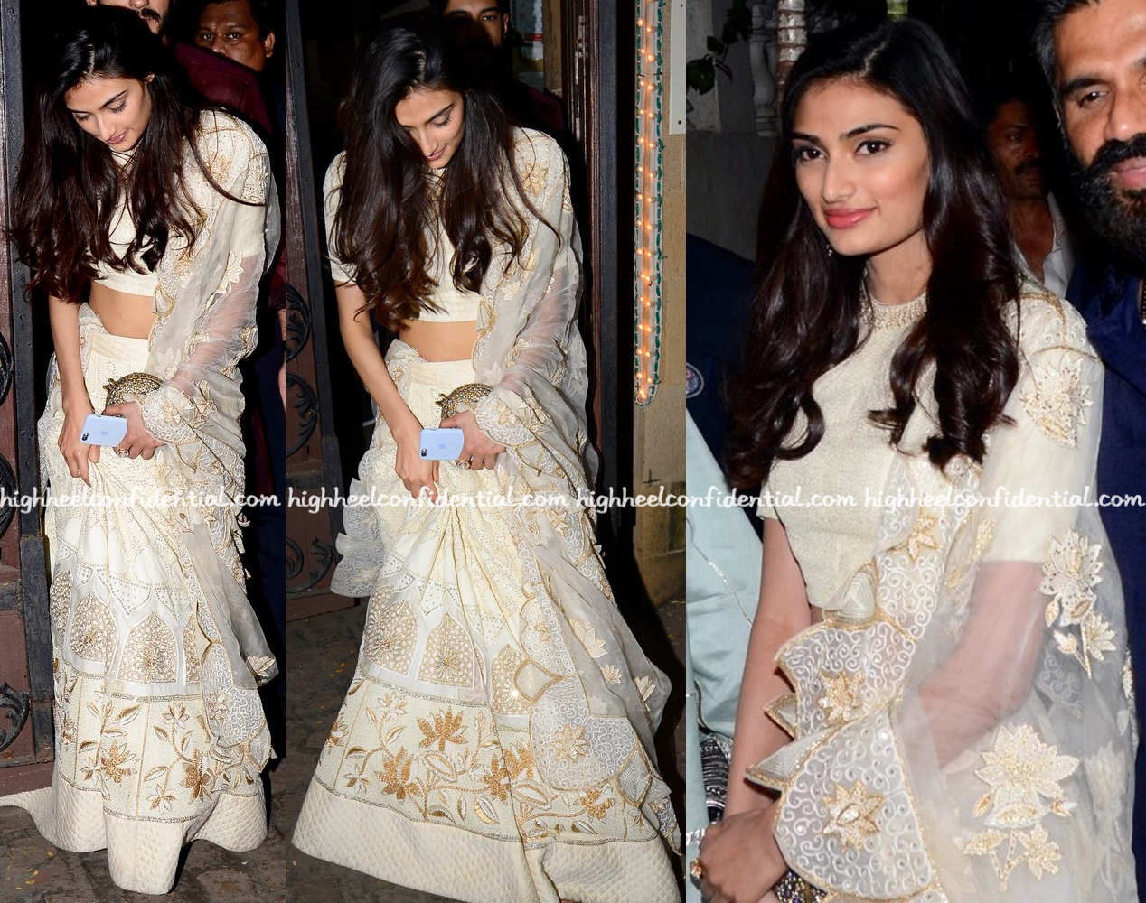 Masaba also did the rounds on Diwali stopping by at multiple folks’ parties. The designer wore her own creation and while she sported a Sunita Shekhawat necklace while getting ready, seems like she changed her mind and opted for the gold earrings instead.