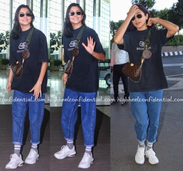 Nora likes to team her denims and classic belt combo with basic crop-tops, Christian Louboutin heels and designer bags (a yellow Balenciaga and black Saint Laurent in this case). It works for her even if the look itself isn’t much to write home about!