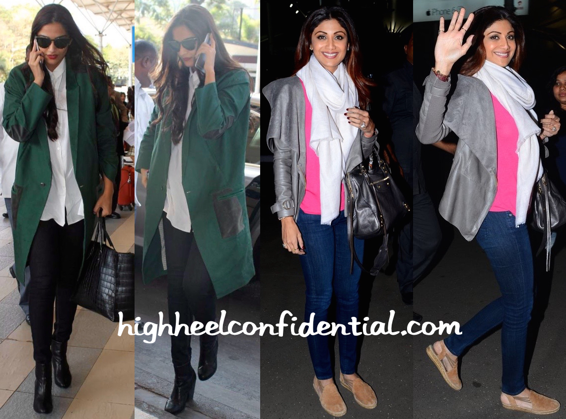 Sonam Kapoor And Shilpa Shetty Photographed At The Airport (With Balenziaga Bags In Tow)