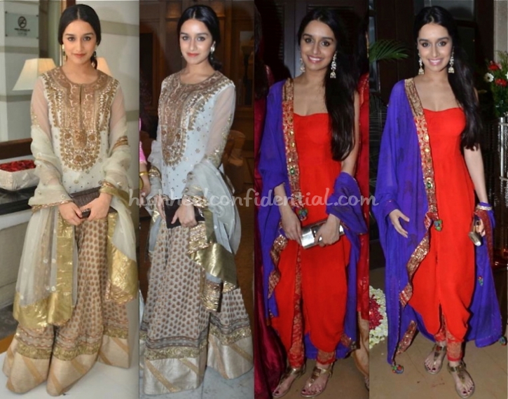 Though Sophie wears her Manish Malhotra sari well, we didn’t think the color did much for her. The peach sari both overwhelmed and, dulled. A rare miss for Sophie!