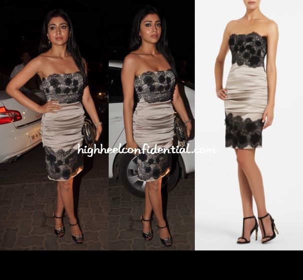 In a strapless BCBG dress was Shriya at the recent do. Yes it’s a basic strapless dress but seeing as how easy it is to take a misstep, let’s just appreciate even a basic look, shall we?