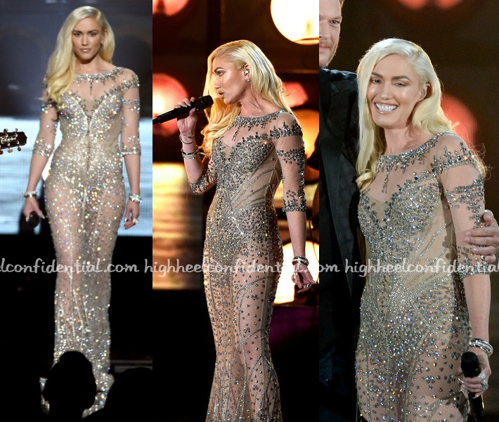 Gwen performed at the Billboard Music Awards on Sunday evening wearing a gown by designer duo, Falguni and Shane Peacock. Not seeing Ms. Stefani sport her trademark bright red lip had me quite surprised and I wish she had it on here. The nude crystallized gown with that makeup seemed to wash her out in pics.