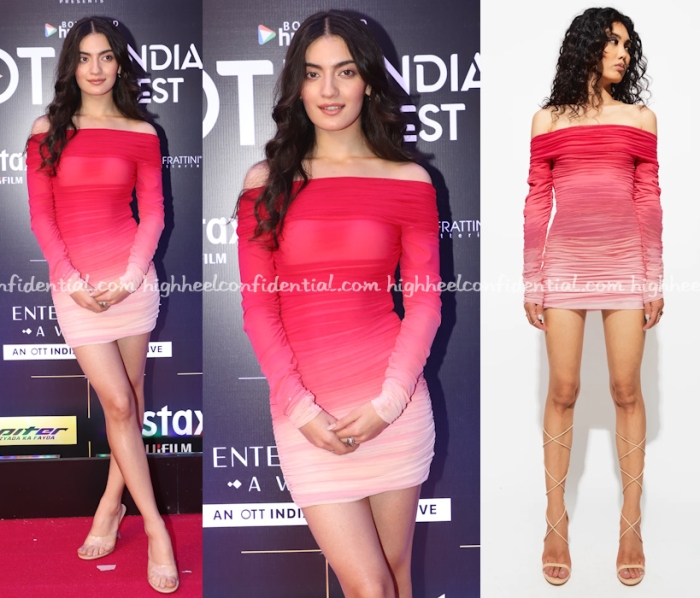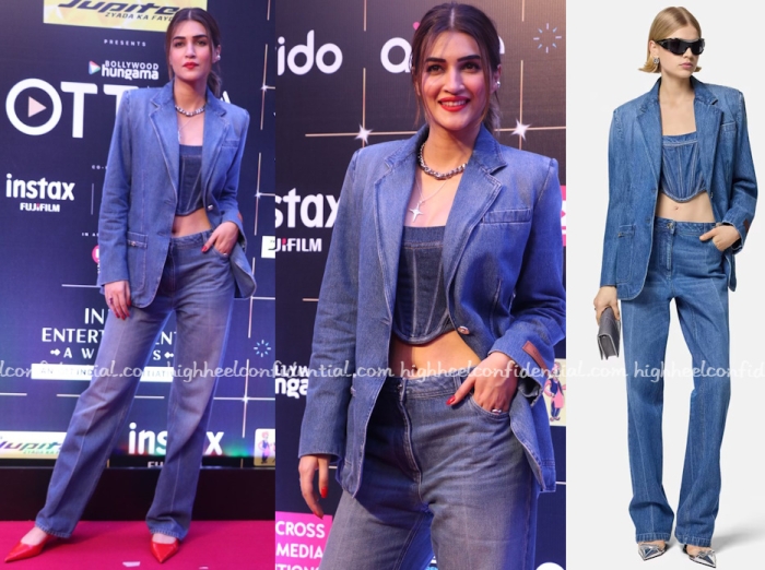 Kriti denim on denim on denim for an appearance at an OTT fest contrasting all that blue with red flats. Waist up, I like it but pressed denims where the crease line is in the front just feel very dated to me. But, that’s me.