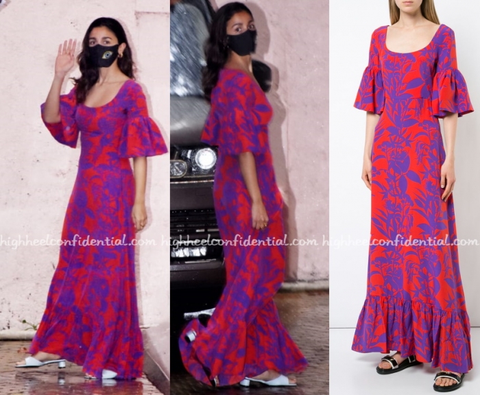 Alia was spotted a few weeks ago out and about wearing a printed floral maxi from Borgo De Nor with white slip on flats. She looked nice.