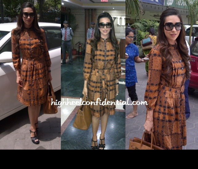 At her upcoming movie’s trailer launch, Kangna put in an appearance is a Burberry Brit dress. Gucci pumps and belt finished out her look.