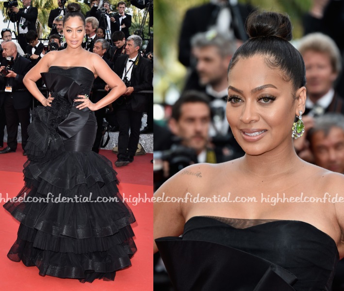 Coming to Lala, between the bow and the tiered detail, the gown had the potential to look overwhelming but the dark color helped in not making it feel so. I wouldn’t say I love the gown, but she sure wore it well.