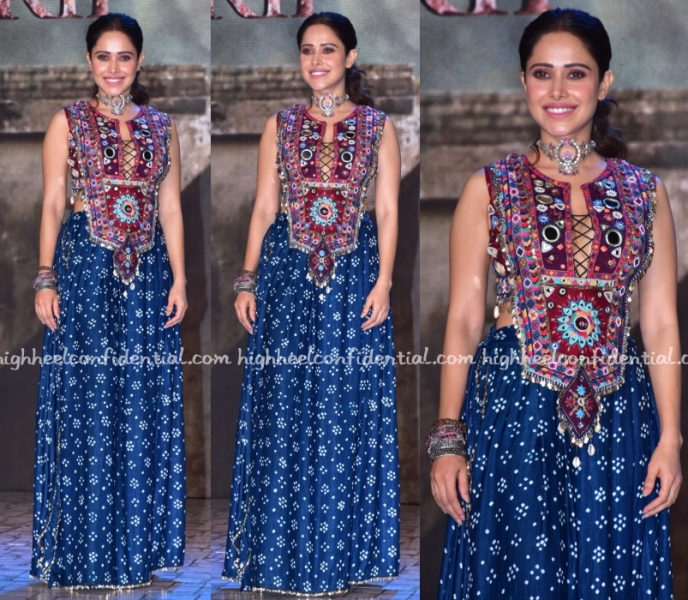 Nushrat attended promotions for her movie wearing boho separates from Karishma Khanduja with silver jewellery and hair in a ponytail. She looked great!