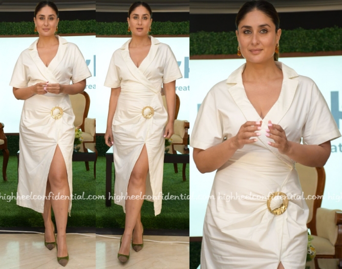 Wearing a cotton Cult Gaia dress paired with suede pumps, Kareena attended an event today in Mumbai. Me, I felt that the buckle detail being lower than waist made the dress look very busy and awkward. Did you like the dress?