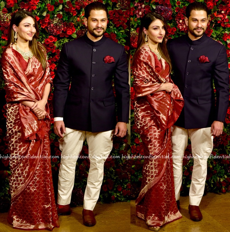 Wearing their festive best, the couple attended a reception last evening. Nothing to fault here, Soha and Kunal looked great!