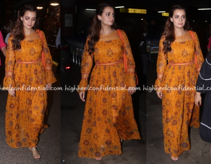 For a screening of her movie, Dia picked a floral-print dress to wear. Wavy hair and metallic lace-up sandals rounded out her look. While Dia looked nice, wish she had picked a pair of less-fussy heels… Given the strong print and choice of hair do, a pair of more minimalist sandals would’ve made it all look less busy and balance things out.