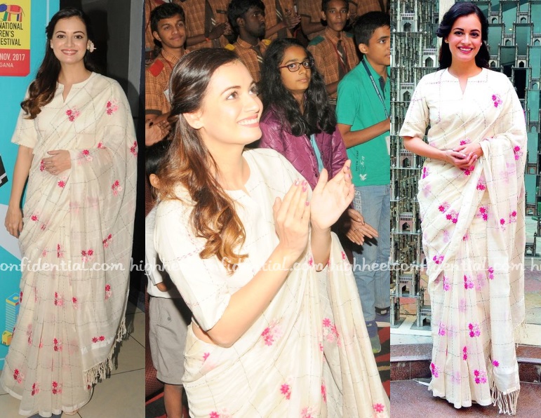 Wearing a Rocky S printed maxi, Dia attended the launch of a new restaurant in Mumbai. Something about the big hair made me be on the fence about the look. I felt considering the maxi was busy with its gold bustier detail and print, the hairdo should’ve been a bit sleeker.