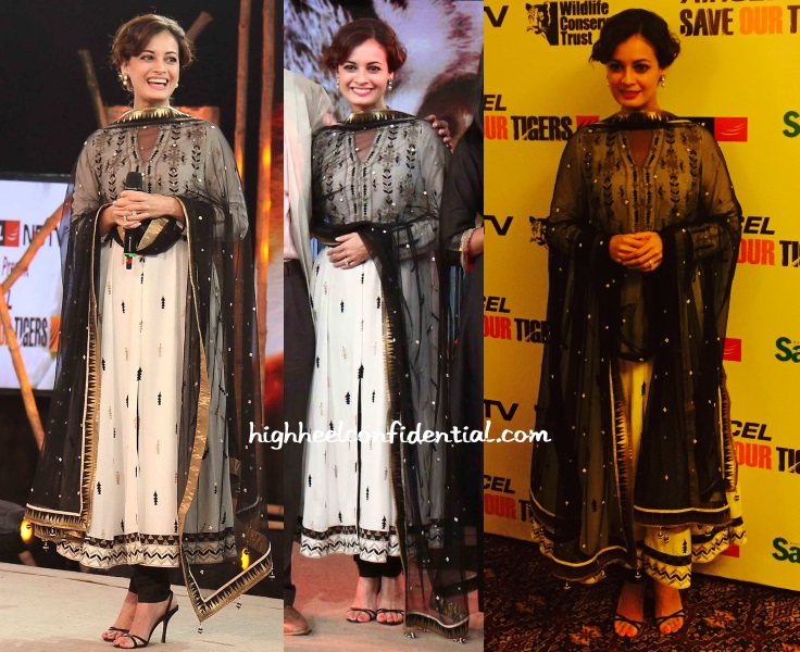 After her last few appearances in jewel tones and black, this look almost seems like a throwback to the days when we almost always saw her in something soft, feminine and understated. It made for a change; we like.