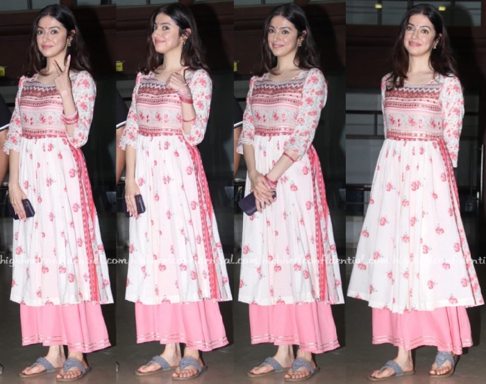 Wearing a printed suit with sandals and a bindi, Divya stepped out for work in Mumbai recently. It’s not very often that Divya does basic, non-fussy look but when she does, it works for her.