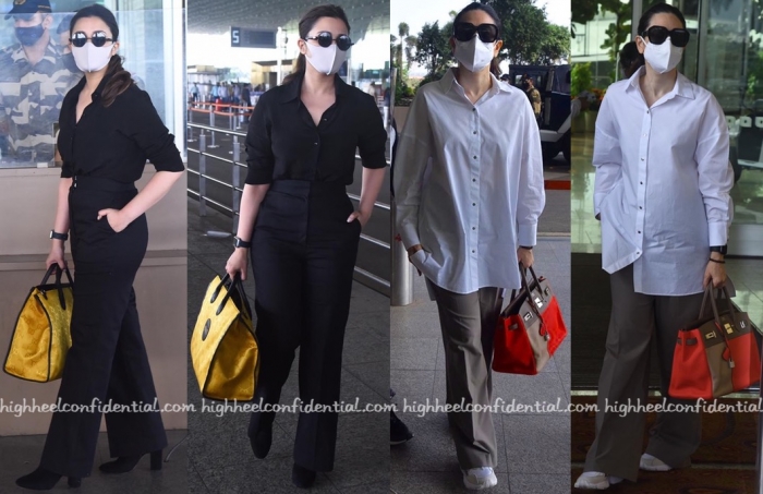 For their recent spot of travel, both Parineeti and Karisma teamed their trousers with crisp buttondown shirts and designer bags, a Fendi for the former and Hermes for the latter. The more pulled together version or the far more relaxed take, which set of separates has your vote? As comfortable as Karisma looks, I am going to have to give this round to Parineeti!