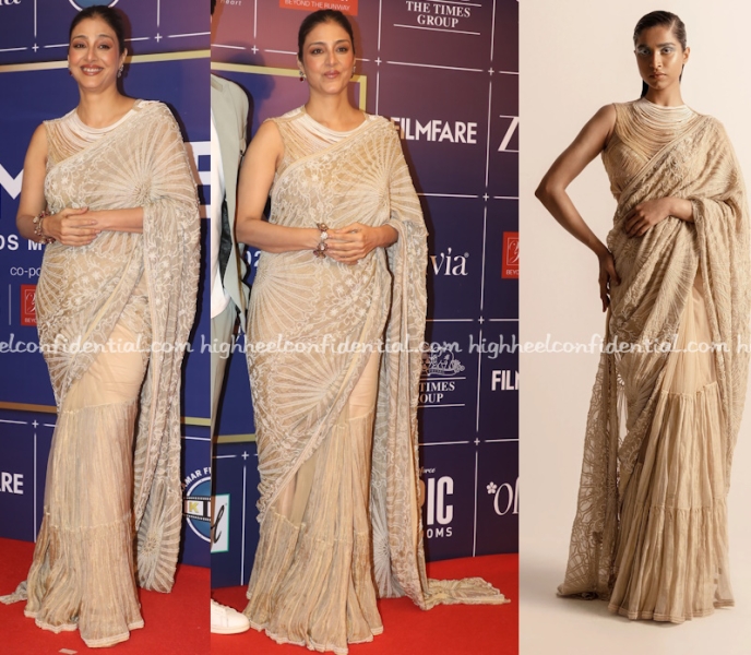 Amruta was seen at the Filmfare Marathi Awards in a black sari from Manisha Gharat featuring a blouse with florals appliques in jewel tones. To show off the blouse, Ms. Kahnvilkar draped the sari around her arm instead of the Nivi way. I wish the the blouse didn’t have the curved design at the bottom but overall, she wore it well.