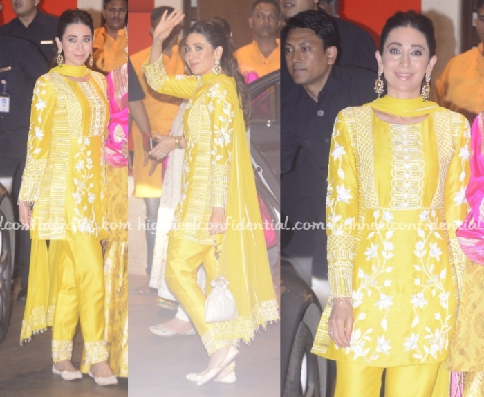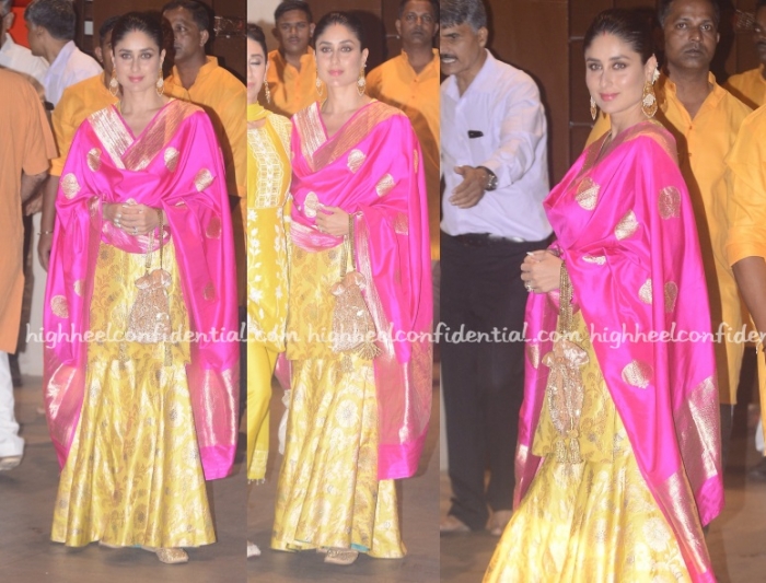 Kareena opted for a yellow brocade Raw Mango lehenga paired with a pink dupatta. Not much to fault. She looked pretty.