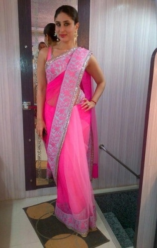 Kareena was photographed in a Manish Malhotra net sari. Not counting the rings on her fingers, the flowers in her hair and those earrings were her only accessories. While we scout for a full-length, like what you see (thus far)?