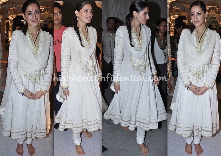 In what seemed like an Anita Dongre anarkali, Nargis partook in Ganesh Chaturthi celebrations. She looked sweet.