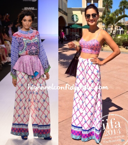 Gauahar took was spotted out and about in Tampa Bay wearing Ken Ferns. The printed separates from the designer’s latest summer collection was one where Gauahar served as showstopper and this won’t be the last we’ll be seeing of her in a Ken Ferns design while at IIFA.