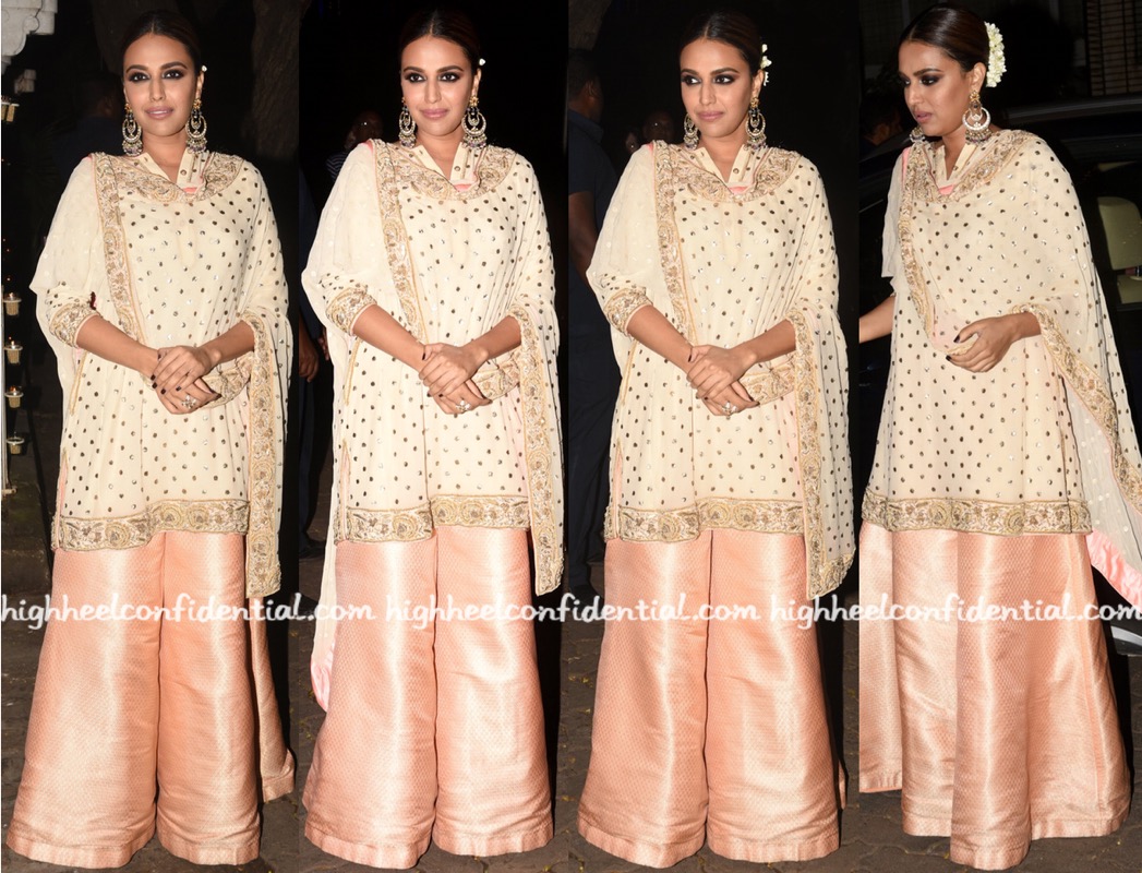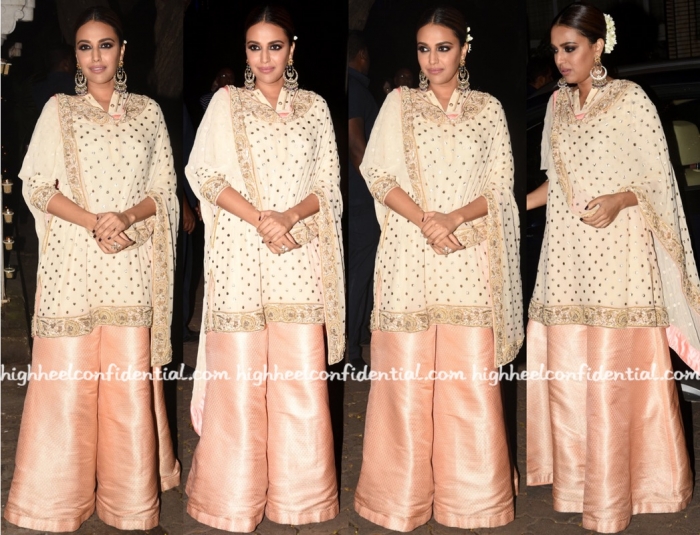 It was a shimmery strapless Reem Acra gown for Ms. Kaif, one that she wore with jewellery from Gehna. It was a safe bet and one that worked in her favor. She looked pretty.