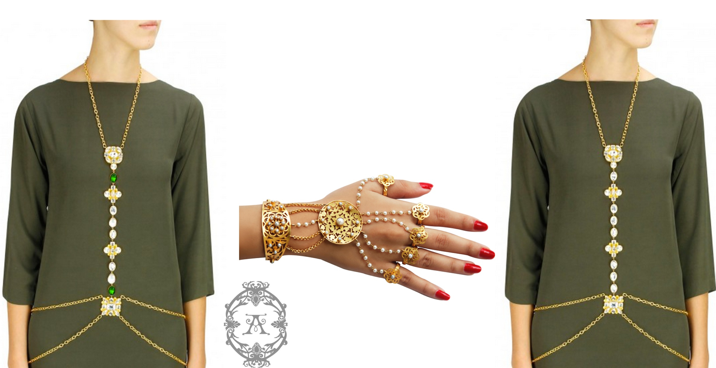 Nothing perks up an outfit like a great piece of jewelry and thanks to Jewellery by Astha Jagwani, three among you stand to win one of the three statement pieces featured here. That’s right, either of the body-chains (priced at Rs. 7500 each) or the hand-harness (priced at Rs. 4500) can be yours! Read on to see how.