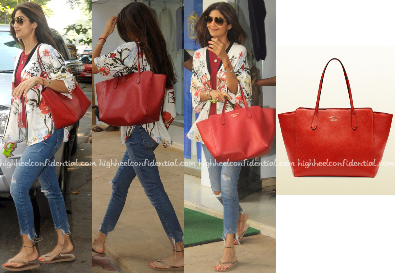 While out and about in Mumbai last evening, Bipasha was photographed in a red dress. Wearing it with a strong red lip and pair of neutral pumps, she finished out the look with a Gucci bag. The bag was much too casual for the dress-pumps combo, and not to mention, it tipped the red scale to ‘too much’. That gripe aside, Ms. Basu looked nice.