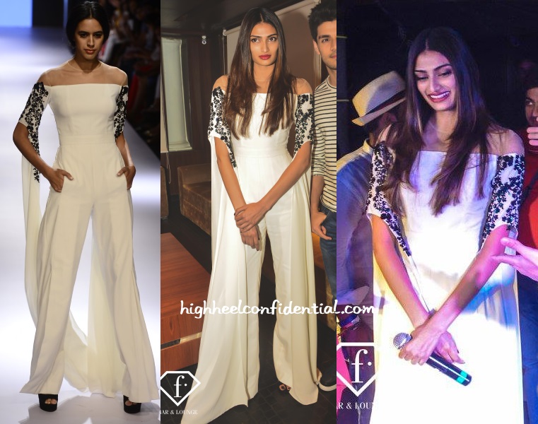 Athiya and Sooraj visited a nightclub in Delhi last week for promotions of Hero where the former was spotted in a white Ridhi Mehra jumpsuit, one that we had said we’d be having a sighting of soon.