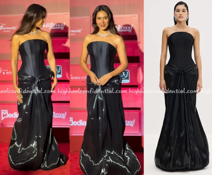 Jyotika was seen at THR’s Women in Entertainment soiree in a one-shouldered ruffle gown from Gaurav Gupta paired with silk pumps, an updo and a pale pink lip. She looked elegant and I’ll take a classic elegant look any day over a trying to be on-trend one.