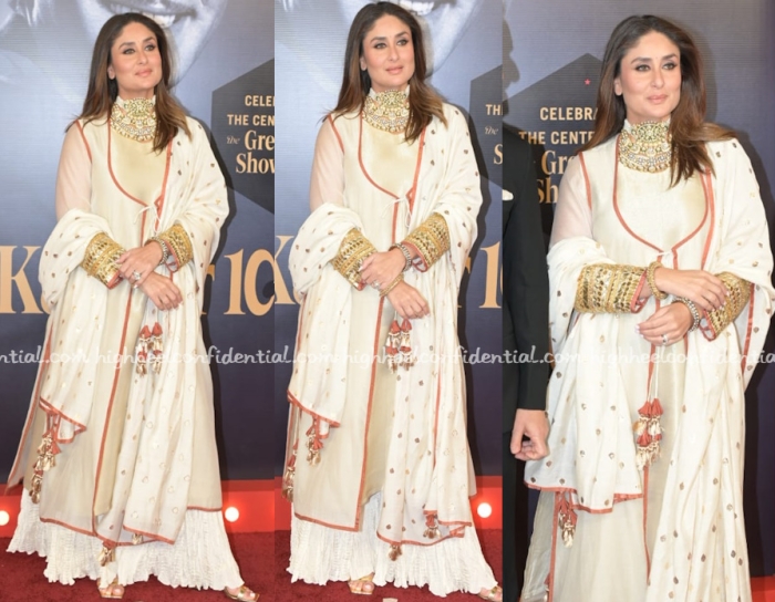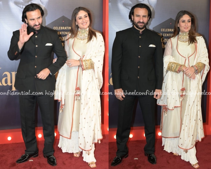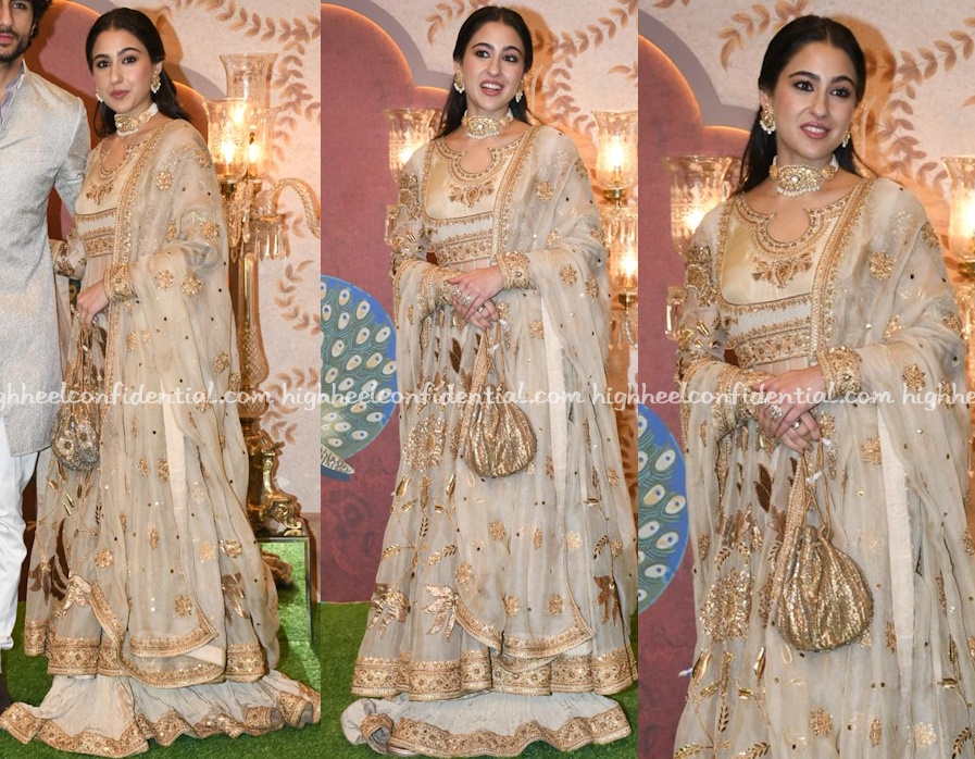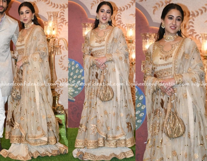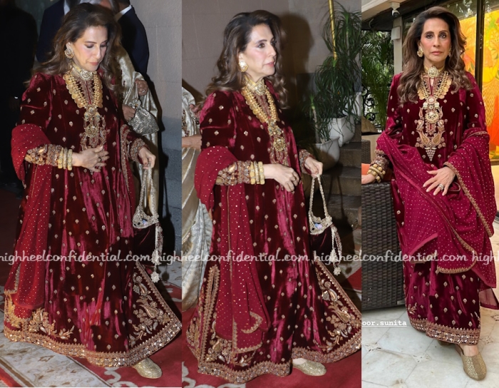 Mrs. Kapoor attended the Jain-Advani wedding wearing a velvet kurta suit by Iqbal Hussain. The kurta had its own intricate embroidery along the neckline but that didn’t stop her from wearing another decadent gold long necklace and choker. The thing is, she somehow makes it work and makes it look good. On others, it wouldn’t. And that, everyone, is innate style.