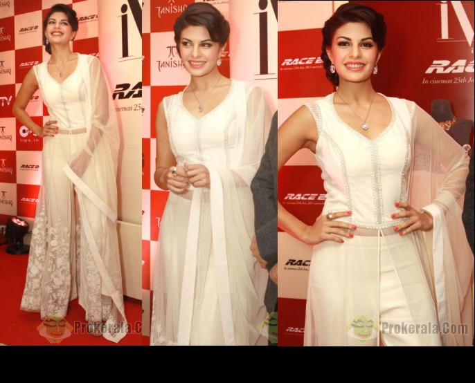 Jacqueline was photographed in a Hemant and Nandita dress while at a radio station to promote her upcoming movie.