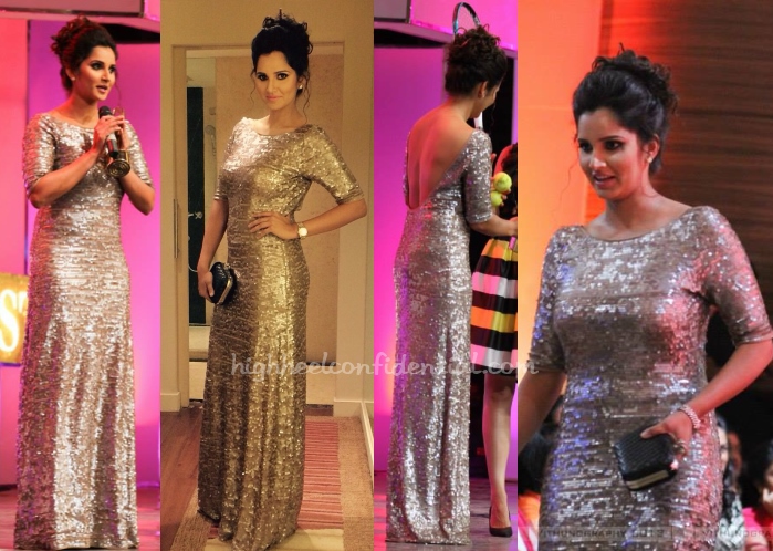 For Sania, it was a backless BCBG gown, one that she wore with a black Bottega Veneta knot clutch and an updo.