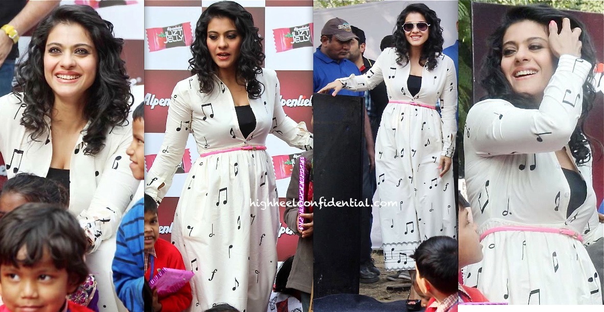Wearing an Indian By Manish Arora printed tunic, Kajol attended a book launch in Delhi on Wednesday. On the runway, the glittery gold leggings added to the tunic’s kitsch factor. In pairing it with black leggings, just about all of it was lost.