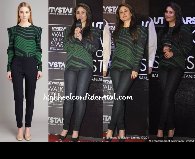 It was a Stella McCartney top for Ms. Kapoor at the recent event. Love the top, but the way it’s been worn does great disservice to the beautiful actress.