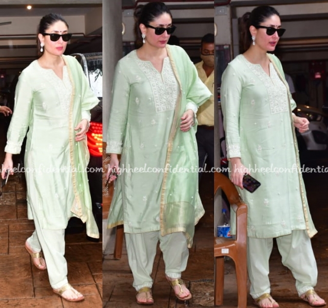 Wearing a simple mint green salwar kurta, Kareena was spotted heading out over to her cousin’s place for Ganesh Puja celebrations. She looked nice.