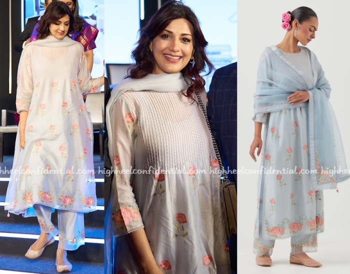 Sonali attended a health related event recently wearing a kurta set from Kora with juttis and her Gucci bag. Like the kurta set?
